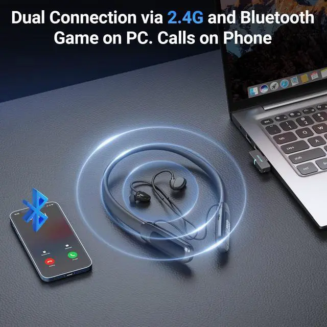 +,: Enjoy flexible connections with 2.4G USB dongle and Bluetooth. Supports dual-device useconnect one device via dongle and one via Bluetooth for seamless switching between gaming and calls.