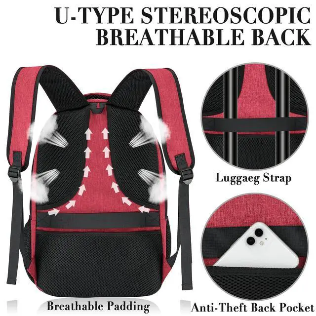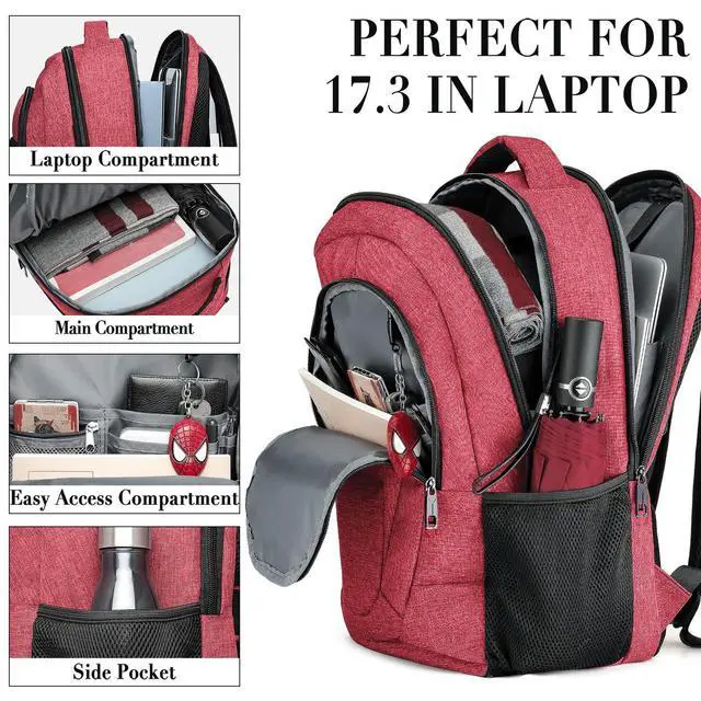 STORAGE SPACE&POCKETS: The main pocket of school backpack is equipped with a separate laptop soft compartment hold 17-inch laptops and 16-inch, 15-inch, 14-inch and 13-inch Macbooks/notebooks. The soft sponge design will protect your laptop. Outside the compartment, a more spacious packing compartment roomy hold an iPad, mouse, charger, binder, books, clothes, etc. Mesh pockets are located on the sides of water bottles and compact umbrellas to keep your belongings organized and easier to find