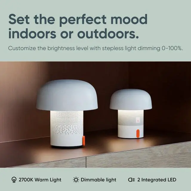 Danish Design & Superior Sound Elevate your space with a music lamp that's a balance of Scandinavian aesthetics and immersive audio. Featuring modern curves and premium materials, this Bluetooth light creates a perfect ambiance. ^^ Customizable Lighting Set the mood indoors or outdoors with this mood lamp that has adjustable brightness levels to customize the ambiance. Whether its a cozy night in or an outdoor gathering, this rechargeable lamp delivers an inviting glow. ^^ Bluetooth Speaker Pairing Seamlessly pair this 10-Watt speaker with another Sensa Play outdoor speaker for a high-quality stereo sound experience.