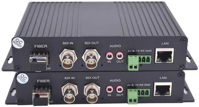 This HD-SDI fiber converters can extend a channel of Bi-directional HD-SDI Video/Audio signal over a fiber optic to far end, One direction from TX to RX, other direction is from RX to TX. Single-mode fiber can up to 12.4 Miles (20Km). with two SFP optical module, LC simplex port. HD-SDI signal is with embedded audio signal ^^ Support SMPTE292M(HD-SDI), SMPTE259M(SD-SDI) and DVB-ASI, Video resolution is compatible with 1080P@30/25, 1080i@60/50, 59.94 and more (Please Note that the model not support 3G-SDI, Not support 1080P@60Hz) ^^ With clock recovery, clock shaping, this function can make sure the video image no flicker, high quality design ^^ Support Video loop out function and one bidirectional RS485 data, Supports embedded digital audio stream.
