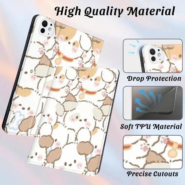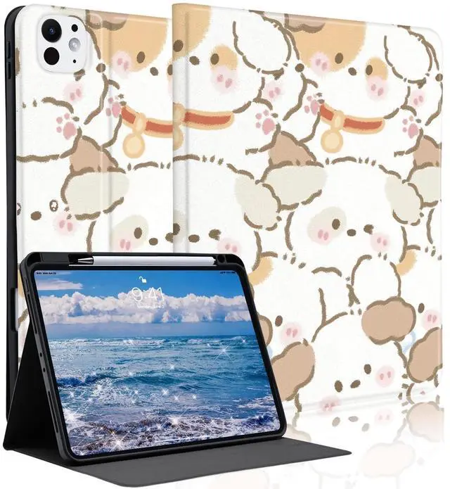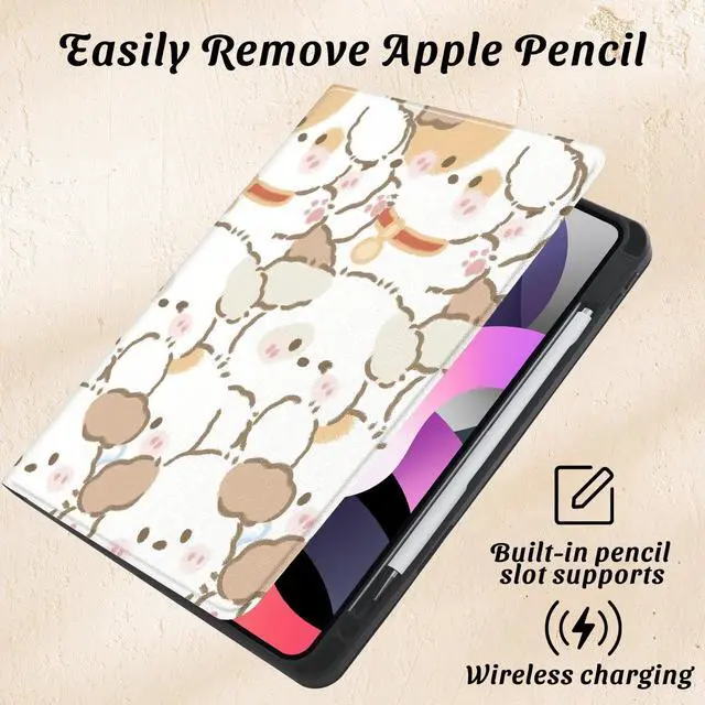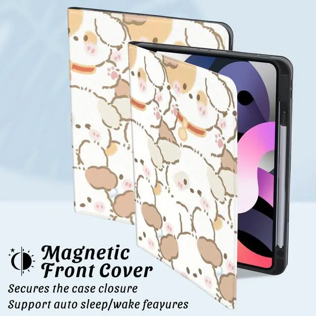 Idocolors Cute Puppy Case for 10.9" iPad A16 2025/2022(10th/11th Gen) with Pencil Holder, Auto Wake/Sleep Leather Soft TPU Back Cover for Women Girls