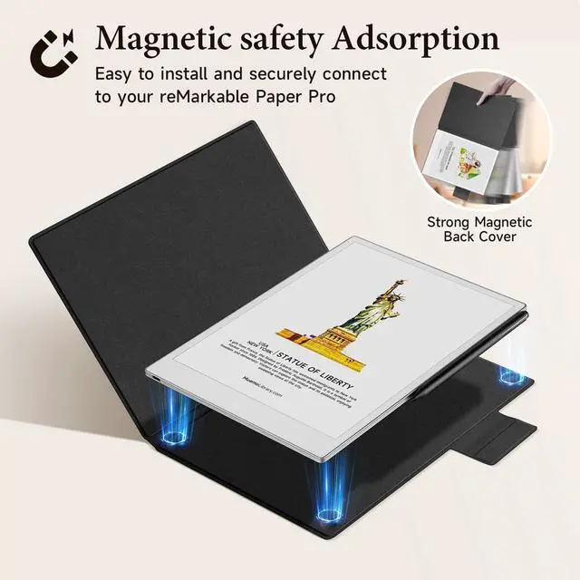 ^^ [Strong Magnetic Adsorption]: Built-in Strong Magnets ensure safety connection for your Remarkable Paper Pro 2024, and you could easily attach/detach your Remarkable Paper Pro Tablet and hold the device in place. Safe magnetic closure will prevent your device against any scratches and dust, saving battery energy to extend standby time effectively.