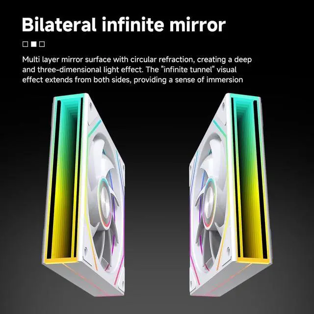 Oversized Infinity Mirror Design: Both sides are equipped with infinity mirrors, paired with a CD-patterned center axis. Combined with ARGB lighting, it delivers ultra-cool light effects.