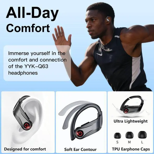 ^^ &: Engineered for your active lifestyle, these wireless in-ear earphones feature flexible ear hooks that adjust for a personalized, secure fit. Whether you're powering through an intense gym session, running in the rain, or exploring the outdoors, these waterproof headphones have you covered. With an IPX7 ratingoffering protection against sweat, rain, and even immersion in up to 1 meter of water for 30 minutesyou can push your limits without worrying about your gear.