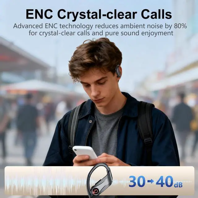 -: A quick 1-hour charge fuels these bluetooth noise cancelling earbuds for up to 14 hours of continuous playback. Paired with the charging case, you get a massive 120 hours of total battery lifeperfect for long days on the go. The innovative dual LED display shows precise remaining power for both the case and earbuds at a glance. Whether you're working or working out, these sports earbuds keep you powered up and ready. ^^.: Experience faster pairing and rock-solid stability with these wireless earbuds. The next-gen Bluetooth 6.1 chip maintains a strong connection within a 49-foot radius while reducing cross-device latency. Simply open the caseyour sport earbuds wireless bluetooth automatically reconnect to your last paired device. Whether you're running or relaxing, enjoy a smoother, more seamless listening experience.