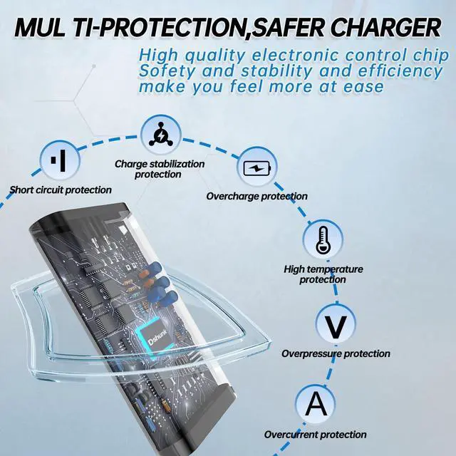 Safer charging experience: there are 10 built-in protection measures against overcharging, short circuit, overheating and other issues to protect you and your connected devices