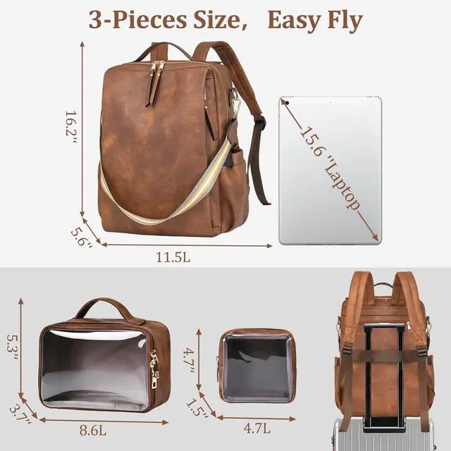 It also meets airlines carry-on requirements and suitable for most airplane seats. Guitar strap add a distinctive element to this bag. Definitely a perfect gift for Birthday, Graduation, Mothers Day, Thanksgiving Day, Christmas. ^^ DIMENSIONS - 11.5"L x 5.6"W x 16.2"H, weight: 1.98 pounds. Roomy space could holds your 15.6 inch laptop, notebook, A4 files, folder, books, umbrella, water bottle, cosmetics and other everyday items. Light weight effectively reduce your loads for flexible move, comfortable to carry. ^^ PREMIUM MATERIALS - This leather laptop backpack select strictly durable material and hardware fittings. It is crafted from the newest Scratch-resistant vegan leather. The business backpack put practicality and fashionable style together, making it fit for various weather as light rain or snow. Theres no doubt that people who gets it will be surprised by its look and quality. ^^ AFTER-SALES GUARANTEE - Customer satisfaction is Dora & Lizs first priority! We promise to offer the best customer service and quality goods to every customer. Please do not hesitate to contact us if you are not satisfied with our products or receive damaged items, etc. Well arrange after-sales team to handle it in 24 hours.