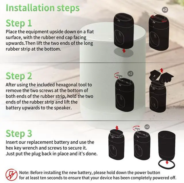 • Easy To InstallEasy to replace, most people can do it by themselves. Perfect for replacing your old batteries. You can also choose this battery as a backup, I believe it will improve your quality of life because you will not need to worry about the Bluetooth Speakers.