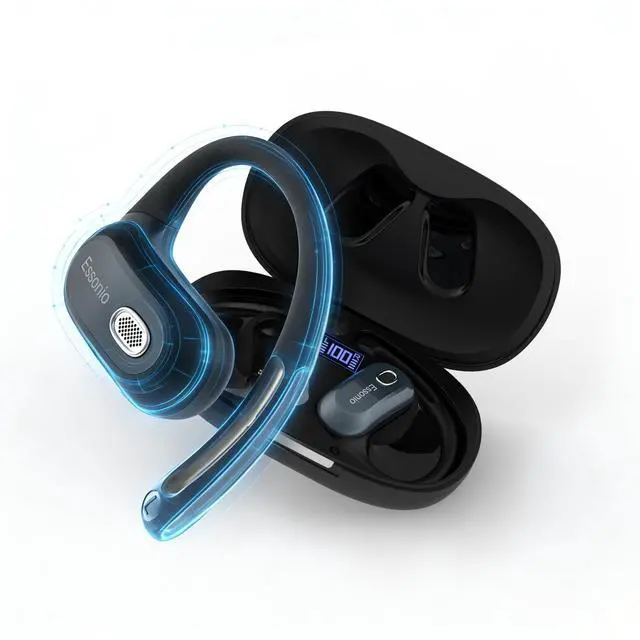 ESSONIO Open Ear Headphones Over Ear Earbuds with Earhook Directional Sound Bluetooth 6.0 Endurance Dual-Layer Silicone Comfort ENC Clear Calls, Waterproof Workout Earphones (Black)