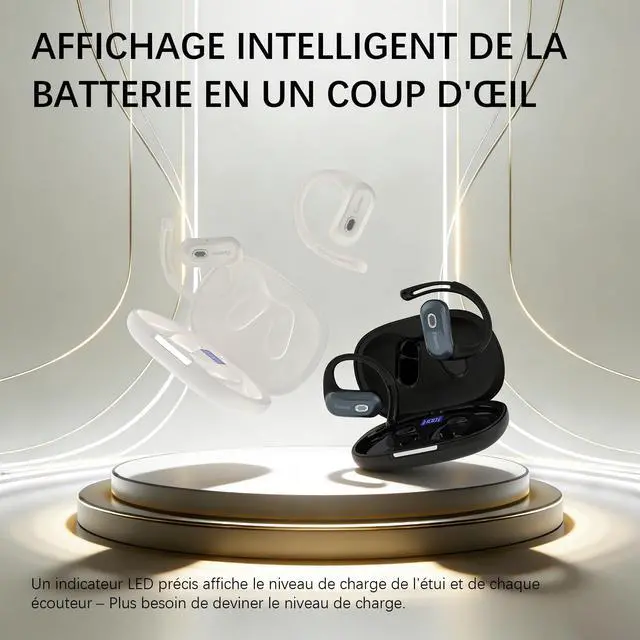 REVOLUTIONARY OPEN-EAR DT 9.0 TECHNOLOGY - Experience private, immersive audio with advanced directional sound transmission that delivers crystal-clear, 360 panoramic sound directly to your ears without leakagestay fully aware of your surroundings while enjoying studio-grade depth, perfect for running, cycling, and urban adventures. ^^ PREMIUM TITANIUM SOUND & COMFORT - Powered by large titanium-plated dynamic drivers for rich, Hi-Fi bass and sparkling highs, paired with memory titanium alloy hooks and dual-layer skin-friendly silicone for an ultra-light, secure fit that feels like second skinall-day comfort without pressure or fatigue. ^^ INTELLIGENT CHARGING CASE WITH BATTERY DISPLAY - Sleek organic-shaped charging case features a smart LED power indicator that shows precise battery levels for both case and earbuds at a glanceeffortlessly monitor your power and stay charged for every moment.