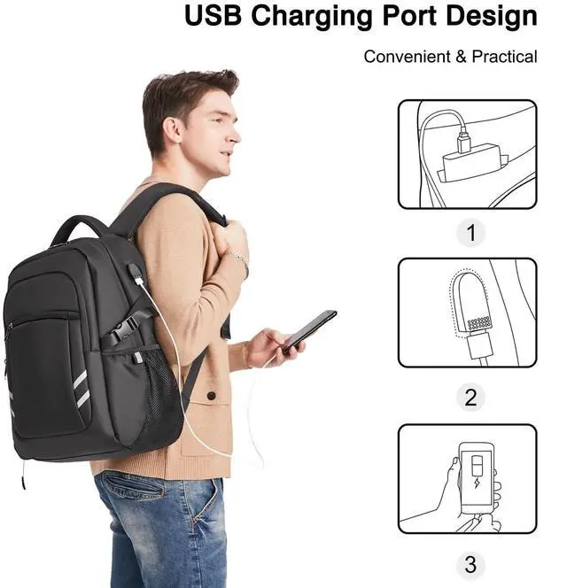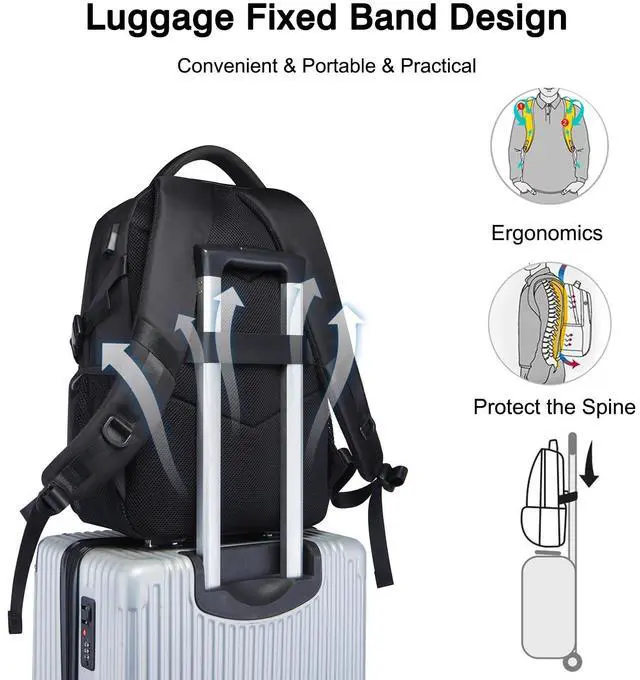 Travel-Smart & Ergonomic Comfort: Experience effortless mobility with a design built for the traveller. The adjustable, padded shoulder straps and breathable mesh back panel provide superior comfort and reduce strain, making it perfect for all-day use. A reinforced luggage strap on the back seamlessly slides over your suitcase handle, transforming it into a mobile carry-on for stress-free airport navigation. The lightweight construction prevents unnecessary heaviness. ^^ Built-In USB Charging Port &