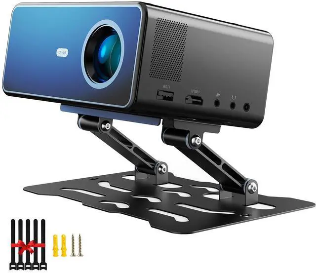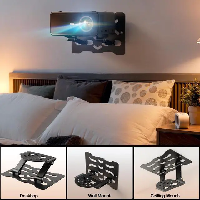 UNIVERSAL PROJECTOR DESKTOP STAND MOUNT - Supports various models of single-hole mini projectors with standard 1/4"(6mm/ 0.23 inch) screws and up to 4.4 lbs weight. Suitable for most small projectors. (Not compatible with 0.15 inches and 0.25 inches, please confirm it before ordering. ) Ideal for Digital Cameras, Camcorders, SLRs, And Anti-Theft Surveillance Cameras ^^ MULTI-HOLE DESIGN FOR FLEXIBLE MOUNTING - No more struggling with single-screw limitations! Our mini projector stand offers multiple screw hole options, ensuring a perfect fit for various projector ceiling mount and wall mount setups. The black powder-coated finish blends well with the majority of home and office environments ^^ ANTI-SLIP & SCRATCH-PROOF PROTECTION - Soft silicone pads provide secure grip and protect your projector from scratches, ensuring a safe and stable installation every time ^^ 180 DUAL-XXIS ADJUSTABLE ROTATION - Freely tilt, swivel, or fold your projector with dual 180 rotationideal for ceiling projection, wall mounting, or tabletop setups without strain.