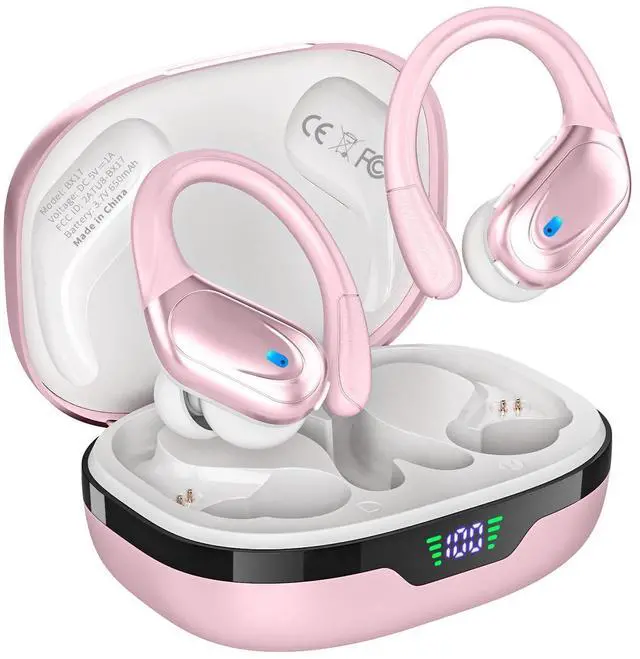 HAOYUYAN Wireless Earbuds, Sports Bluetooth Headphones, 80Hrs Playtime Ear Buds with LED Power Display, Noise Canceling Headset, IPX7 Waterproof Earphones for Workout/Running (Pink)