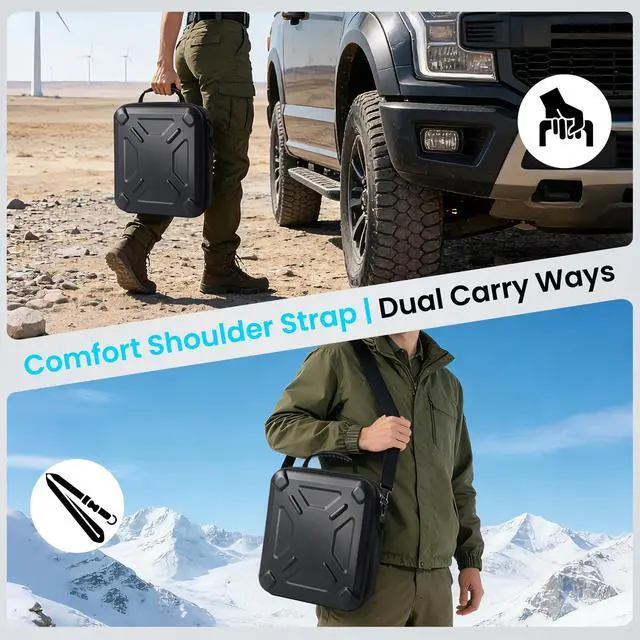 ^^ Shock-resistant and durable: The Starlink Mini Travel Case case adopts a 3D integrated EVA structure, which can absorb shock and resist wear, ensuring the safety of the Starlink Mini antenna and accessories during transportation. It has a professional shock-proof structure and is suitable for various indoor and outdoor adventure scenes.