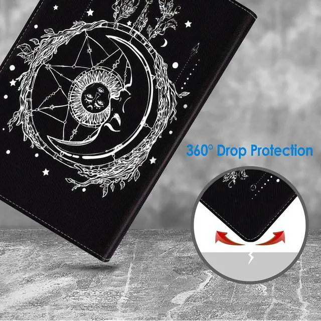 Why You Choose Us: Quality MaterialMade of durable Luxury PU leather to prevent scratches. It is durable, slim, comfortable, lightweight. FunctionalAnti-slip colloid cover linning can help your device stand stablyYou can freely adjust multiple angle to comfort you when watch videos, typing, gaming or learning, etc. Power SavingPrivide auto sleep/wake, Open the case to wake up and close the case to shut off, Saved power. Perfect CutoutsPrecise incision fit well for all feature using, Easy to access to all buttons and features, controls and ports. ProtectionPremium thickening TPU back case and durable front leather cover help protect your tablet from daily bumps scrapes and accidental drops. Perfect GiftThis tablet case would be a perfect gift for girls boys parents and your friends. Also it's great for travel, business or daily using.