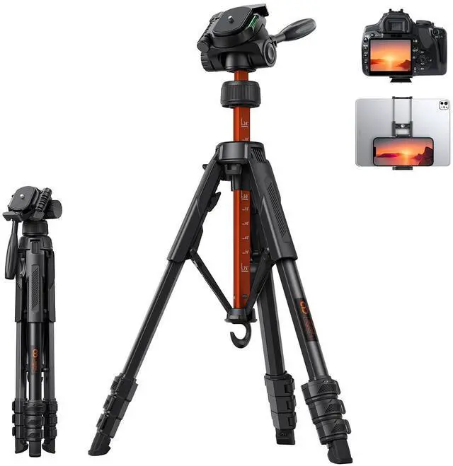 Height Adjustment: This tripod for camera featuring a 3-way pan head with silky-smooth 360horizontal rotation, 180up/down tilt, and 90vertical flipping capabilities. this tripods offers versatile height adjustment from 19" to 67" - providing the perfect flexible positioning for all your photography needs, from panoramic landscapes to portrait photo, making solo creative work effortless.