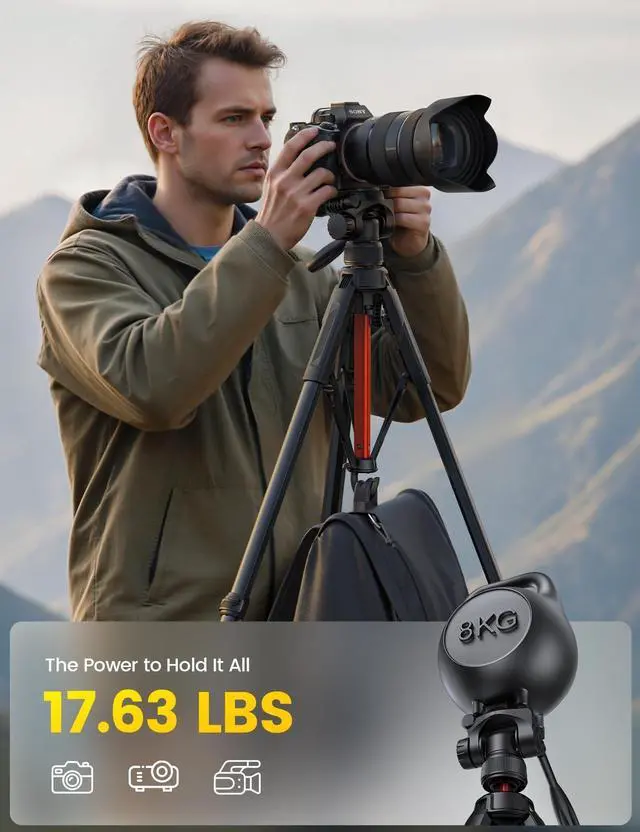 Patented Rapid Leg Deployment System: This camera tripods features an advanced quick-release lock where simply engaging the latches allows tripod deployment/collapse of all three legs, with adjustable leg angles (24-75). The multi-angle adjustable enhances stability on uneven terrain and facilitates low-angle shooting. The externally-mounted locking levers eliminate the pinching hazards inherent in conventional twist-lock designs. ^^ 17.63 LBS Tripod Head