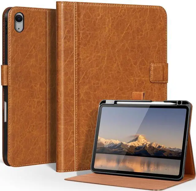 [COMPATIBILITY] - Only compatible with 2025 iPad (A16) 11th gen 11 inch and 2022 ipad 10th gen 10.9 inch(model: A3354/A3355/A3356/A2696/A2757/A2777/A3162), not compatible with any other devices. ^^ [PREMIUM FULL-GRAIN LEATHER] - Crafted from premium full-grain leather, this case offers a soft, tactile feel and develops a unique patina over time, making it exclusively yours. The precise stitching ensures superior durability, providing a sophisticated and professional look for your iPad. ^^ [COMPLETE FUNCTIONS] - Support Auto Sleep/Wake feature; Cover multi-angles stand mode. anti slip and anti fingerprint, Heavey Duty Protection Shockproof. Honeycomb designed TPU shell accelerating heat dissipation, durable for wrestling. The secure magnetic clasp ensures the case stays firmly shut in your bag, protecting the screen from scratches and accidental openings. ^^ [PRECISION FIT & 360ALL] -Round Protection Engineered for a perfect fit with precise cutouts for effortless access to all ports and cameras. Your device is shielded by a 3-layer defense system: the rugged leather exterior, the shock-absorbent TPU inner frame, and the scratch-proof soft microfiber lining. Raised bezels around the screen and camera keep them safe from direct contact with surfaces, ensuring comprehensive protection without bulk. ^^ [ELEGANT COMPANION] -This leather iPad case is an elegant companion for your mobile work and life. Whether you are a business elite, a creative person or an academic teacher and student, whether in a cafe or a studio or on a business trip or in a library or lecture hall, it can provide all-round protection for your iPad.