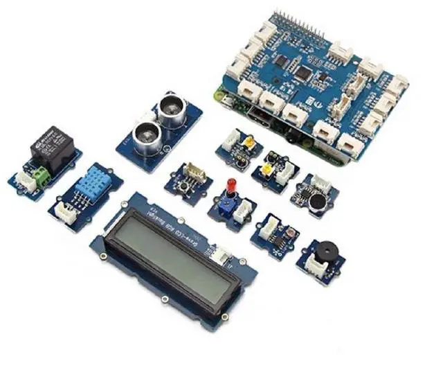 What is GrovePi+ Start kit for Raspberry Pi? Carrying a GrovePi+ board together with 12 carefully selective Grove sensors with 10 pieces cables, this starter kit gets you up and running with the Raspberry Pi quickly. Just slip the GrovePi+ board over your Raspberry Pi and connect sensors to the board, you're ready to start hardware playing and prototyping with the powerful platform. About The GrovePi+, It is stacked on top of the Raspberry Pi without the need for any other connections. Communication between the two occurs over the I2C interface. All Grove modules connect to the universal Grove connectors on the GrovePi+ shield via the universal 4 pin connector cable.