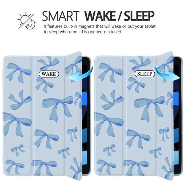 Auto Sleep Wakeup: Bow Pattern iPad Cover Built-in magnet, Sensitive Auto Wake/Sleep, More energy saving, extends your iPads batter. Slim Lightweight Tri-fold Stand with viewing and typing angle ^^