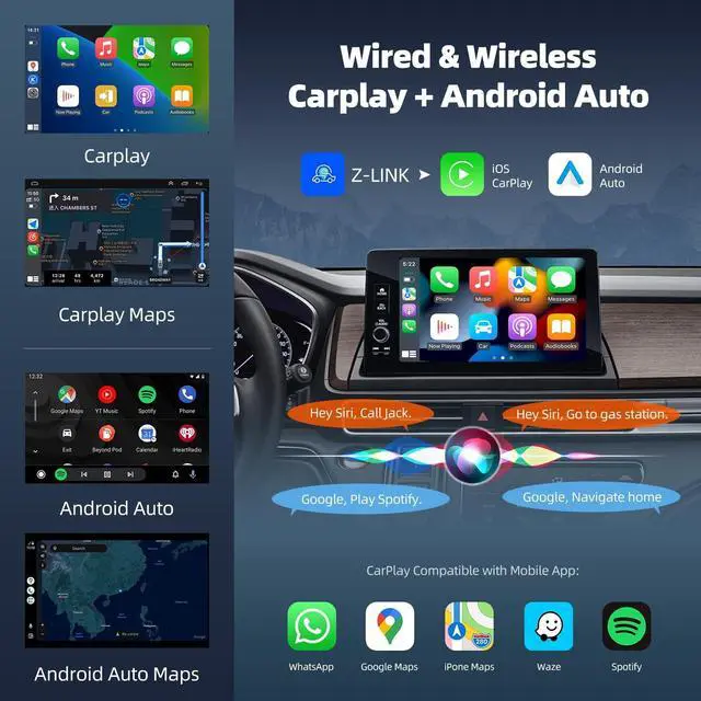 CARPLAY+ANDROID AUTO+MIRROR LINK: Upgrade your Chevrolet Cruze with a 9.7" touchscreen. Supports wireless Apple CarPlay, Mirror Link for IOS, and wired/wireless Android Auto and Mirror Link for Android. Enjoy seamless access to apps, enhanced navigation, and hands-free calling.
