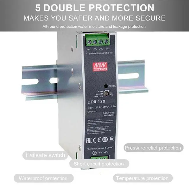 This ensures the safety of both the converter and your valuable equipment. Designed for DIN rail mounting, the DDR-120A-12 offers easy installation and integration into standard control cabinets. Its compact size and convenient mounting options minimize space requirements. The DDR-120A-12 also features a 5V standby output, providing additional functionality for powering auxiliary devices.