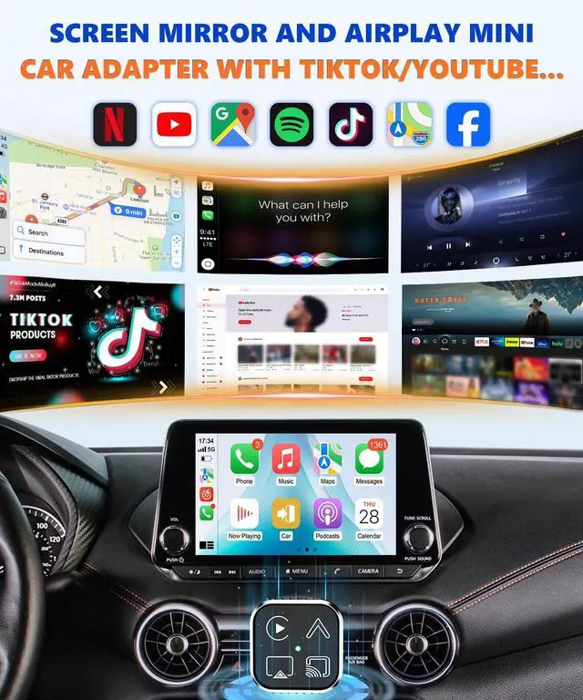 Transform your daily commute with the Wadpon 2026 Mini Wireless CarPlay & Android Auto Adapter, a versatile 4-in-1 solution that brings wireless connectivity to your vehicle's entertainment system. This compact dongle seamlessly converts your wired CarPlay or Android Auto connection to wireless, eliminating the hassle of constantly plugging and unplugging your phone. Featuring advanced 5.8GH z technology, it maintains a stable and reliable connection for uninterrupted access to your favorite navigation apps, music, and hands-free calling. The adapter supports multiple connectivity options including AirPlay and MirrorLink, making it compatible with a wide range of devices.