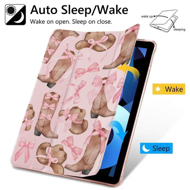 Automatic sleep/wake up&built-in pen holder: This bow cowgirl boots case for ipad can be opened without touching a button. When the case is opened, it will automatically wake up. When you close it, the pad will automatically enter sleep mode. Helps to extend battery life. This pink bowknot lovely case for ipad has a hidden slot designed specifically for storing pencils, making it easy to carry pencils with you.