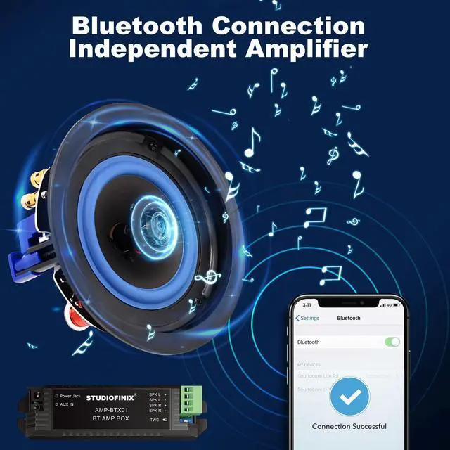 Bluetooth Connectivity: The independent digital amplifier box with Bluetooth technology enables wireless audio streaming from smartphones, tablets, and other devices, offering a stable 15m connection range for effortless surround sound experiences.