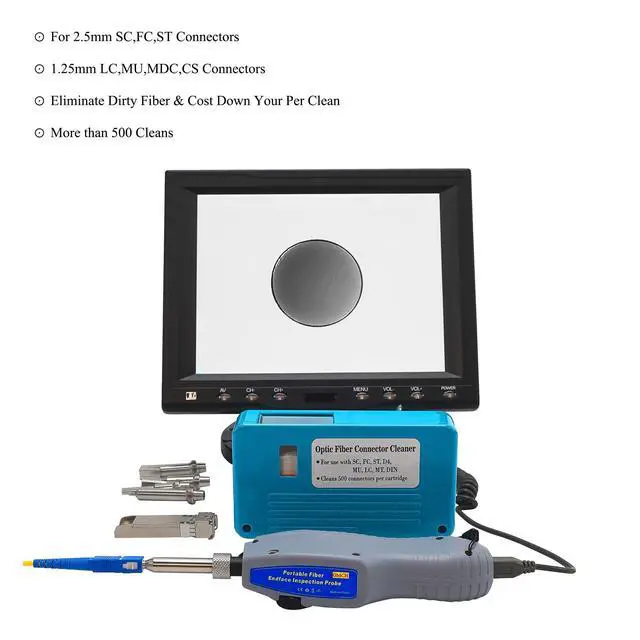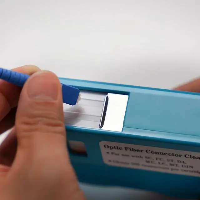 APPLY FOR MANY KINDS OF MALE CONNECTORS This fiber cleaner is designed for cleaning the ceramics ferrule & fiber endface of MTP/MPO/LC/MU/SC/FC/ST/E2000/DIN/D4/MT-RJ etc. male connectors (includes PC and APC ferrule type), disposable with 500+ times clean per tape ^^ SUPERIOR AND CONSISTENT CLEANING EFFECT - Precise mechanical action delivers consistent cleaning effect. The cleanliness can reach to 99% or above. Especially for oil and water, its cleaning effect is far better than traditional swab cleaning rods ^^ CREATIVE PRESS-TO-CLEAN DESIGN - Simply pressing motion engages connector and initiates cleaner, automatically advance with fresh cleaning tape ^^ CONVENIENT AND EASY TO USE This fiber cleaner has a shape of common box, which is easily handled and operated the cleanings ^^ SUPERIOR QUALITY This fiber cleaning box cleaning tape constructed with anti-static material and clean micro fibers are densely stranded and debris free, So as to ensure the excellent cleaning effect
