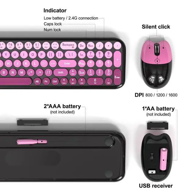 Colorful & Perfect Gift Idea: The vibrant wireless keyboard and mouse set is ideal for both home and office use. It also makes a thoughtful gift for birthdays, Christmas, or New Year.