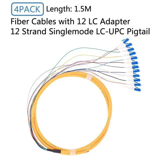 Number of plugs: 1000ApplicationTelecom and Datacom, Storage Network, CATV & Multimedia Application, Systems Integration for Long Haul, Metro and Access Network, Fiber to the Indoor (FTTX) Test. Package Included4 x 12 Strand Fiber Optic Pigtail Cable with 12 Strand LC-UPC Connectors which connect to the end equipment, like an adapter panel or optical transceiver.