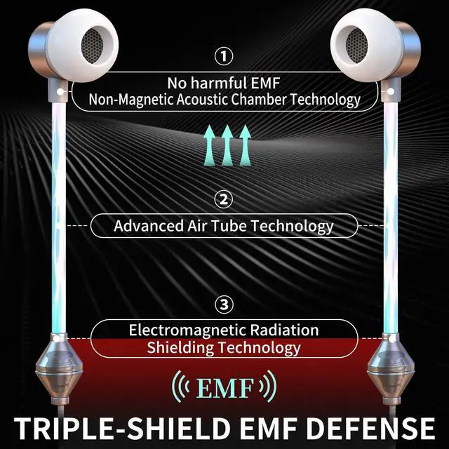 Proven EMF & Radiation Free Technology CWUIGA utilizes an advanced air tube design. The electromagnetic sound drivers are relocated to the inline control module, away from your head. Audio travels through hollow, EMF-free air tubes via pure acoustic vibration, blocking over 99% of direct EMF radiation. This makes our product authentic zero emf headphones and the ultimate anti radiation solution for health-conscious listeners. ^^ High-Fidelity Sound & Enhanced Noise Reduction Experience exceptional audio clarity. Our air tube headphones are acoustically tuned to deliver rich, balanced stereo sound with crisp highs and mids.