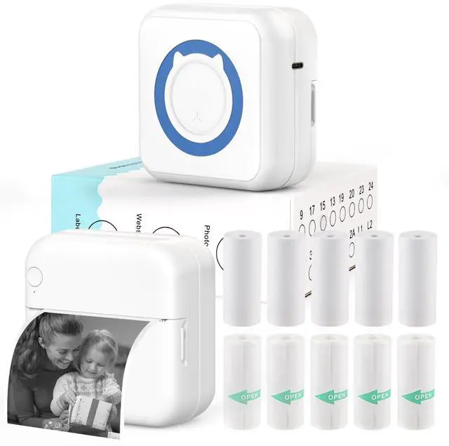 Inkless Mini Sticker Printer --- Our wireless mini thermal printer measures 3.1 x 3.1 x 1.5 inch, weight 5.3 oz, small size enough to carry with you anywhere. Our mini pocket printer is a thermal printer which doesnt need ink, so that you can print anything you want at anytime. Built-in rechargeable battery supports about 800 times print through one-time full charge, which is more convenient for your use. ^^ Multifunctional Print App funprint --- This mini bluetooth printers app has many templates, such as holiday themed templates, such as Easter, Halloween, Christmas, other templates like animals, entertainments, letters, characters, plants, foods and so on, very versatile to meet your diverse needs.