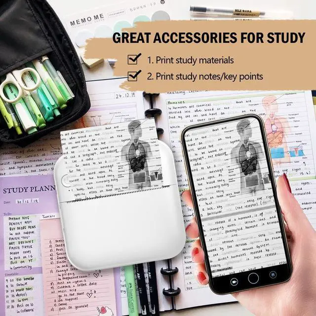 Way 3: Search "Fun Print" in the App Store. You can turn on the wireless sticker printer and open the bluetooth on your phone, open the "funprint" app and connect to "MX06" device. ^^ Multipurpose Uses --- You can choose pictures from your phone album, write your text, or make labels, journals, notes, barcode, QR codes, receipt, etc. Students can use this inkless pocket printer to print blank templates, fill color to exercise their imagination, also can use it to print learning materials or study notes. Parents can use this mini portable printer to organize shopping/to do lists, work plans or more, a great tool for all ages. ^^ 10 Rolls Of Thermal Paper --- The wireless mini photo printer comes with 1x mini thermal printer, 1x charging cable, 5x rolls of normal thermal papers ( 2.2 wide), 5x rolls of sticky papers. It is great set with large quantities of thermal paper, which is enough for your daily use and help you save money.