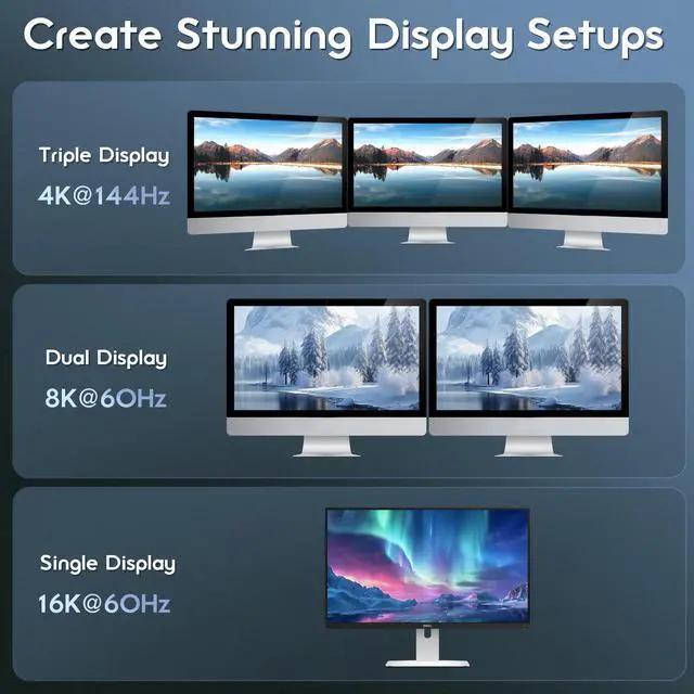 ^^ high performance: Unidirectional transfer speeds of up to 120 Gbps are ideal for high-resolution displays or high-speed storage, enabling seamless transfer of large files, datasets, and UHD video/photos. ^^ 16K/8K