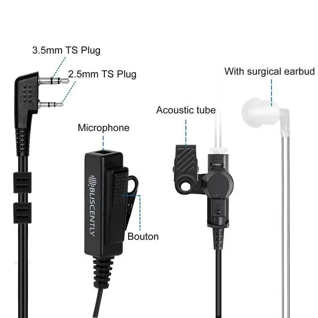 STOP: CHECK BEFORE YOU BUY!!! This is a Kenwood-Type 2-Pin (K-Plug) connector. It is NOT compatible with Motorola, Midland, Cobra, or Icom radios. The pin spacing is 11.5 mm center-to-center. Please verify your radio's port with our 2nd image. Choosing the wrong plug is the main reason for returns. If unsure, contact us before buying! ^^ CRYSTAL CLEAR SURVEILLANCE AUDIO Our professional acoustic tube earpiece provides superior concealment while delivering crisp audio even in noisy environments. The medical-grade mushroom earbud fits snugly for all-day 12-hour shifts. Perfect for security, hospitality, and warehouse staff needing private, hands-free communication. ^^ UPGRADED BIG PTT & SENSITIVE MIC Features an oversized Big Size PTT button for easy operation even with gloves. The 2-wire radio headset design with a 360 rotating heavy-duty clip allows you to fix the PTT and sensitive microphone exactly where you need it, ensuring your voice is transmitted clearly every time. ^^ 5KG TENSILE STRENGTH DURABILITY Stop wasting money on fragile cables. Our heavy-duty radio earpiece is made of high-grade, reinforced PU material, tested to withstand up to 5KG of pulling force.