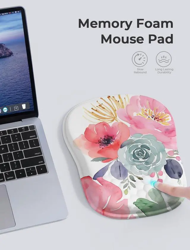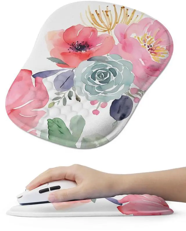 ORIENWEEDA Watercolor Floral Ergonomic Mouse Pad for Carpal Tunnel Pain Relief, 65% Usable Mouse Area, Memory Foam Concave Wrist Rest for Office, PC, Gaming