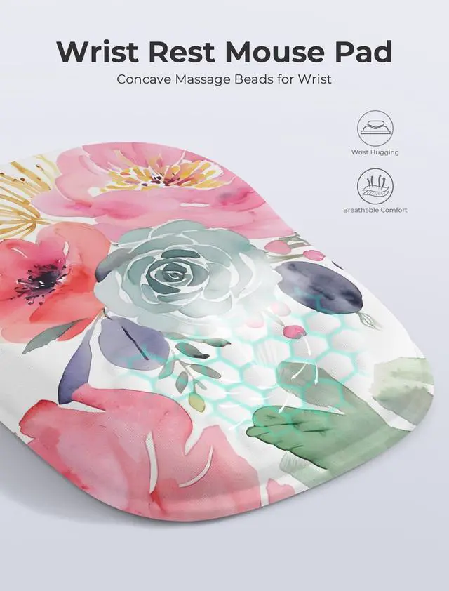 • UNIQUE CONCAVE & MASSAGE SUPPORT DESIGN Experience a custom-fit comfort that standard pads can't match. The rest features a uniquely engineered concave curve that nestles your wrist, eliminating pressure points by providing perfect, continuous contact. Integrated raised massage nodes further enhance comfort by stimulating circulation, making long sessions feel noticeably better.