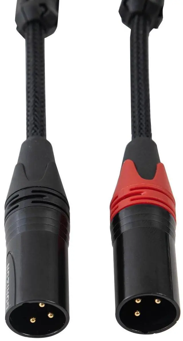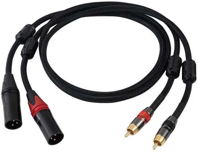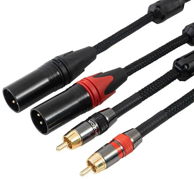Elevate your audio setup with this professional-grade dual XLR to RCA cable. Featuring premium gold-plated connectors for superior signal transfer and corrosion resistance, this heavy-duty cable ensures reliable connectivity between professional and consumer audio equipment. The robust braided shield provides excellent noise rejection and durability, while the distinctive black cable jacket with red accents offers both style and easy identification. Perfect for connecting mixers, amplifiers, microphones, and other professional audio gear to consumer electronics. The high-quality construction includes male XLR connectors on one end and RCA connectors on the other, making it ideal for balanced to unbalanced audio connections.