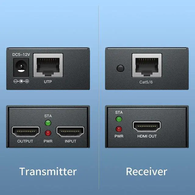 Long-Distance HDMI TransmissionAchieve a 60m/196ft transmission distance with Cat6/7, and 40m/130ft with Cat5e, providing superior audio and video quality for longer distances. For optimal performance, we recommend using Cat6 cables.