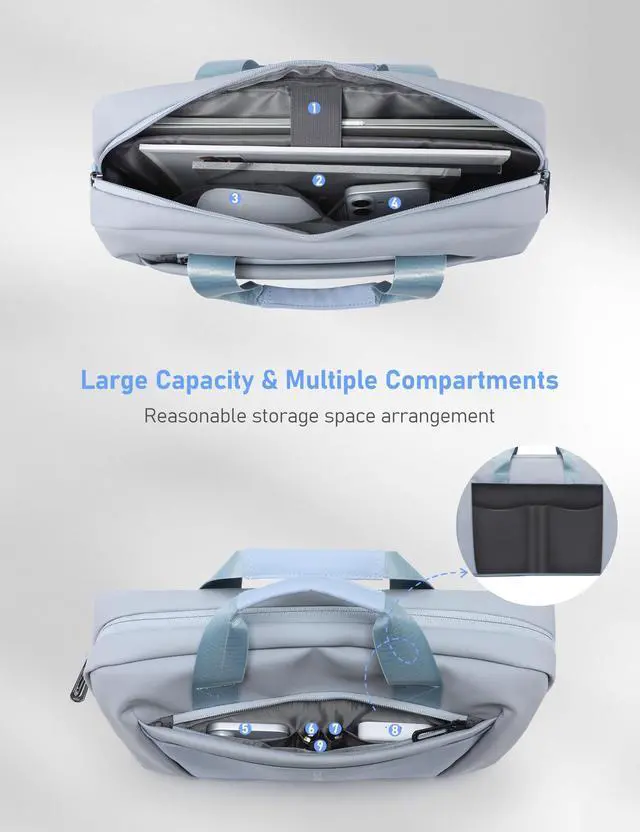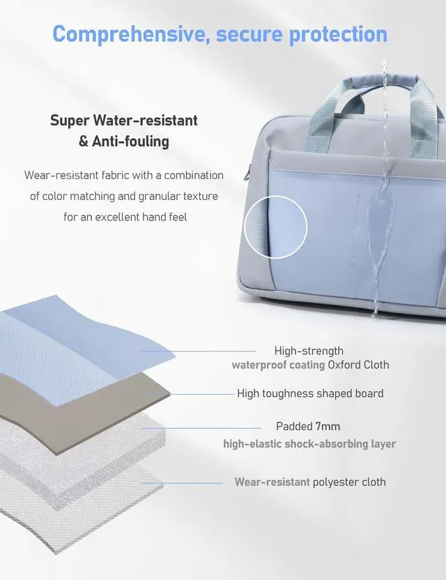 Superior Protection: It uses high-strength Oxford cloth with waterproof coating, which is super water-resistant, wear-resistant and oil-resistant. The interlayer uses high-elastic shock-absorbing material to protect your laptop and items in all directions ^^