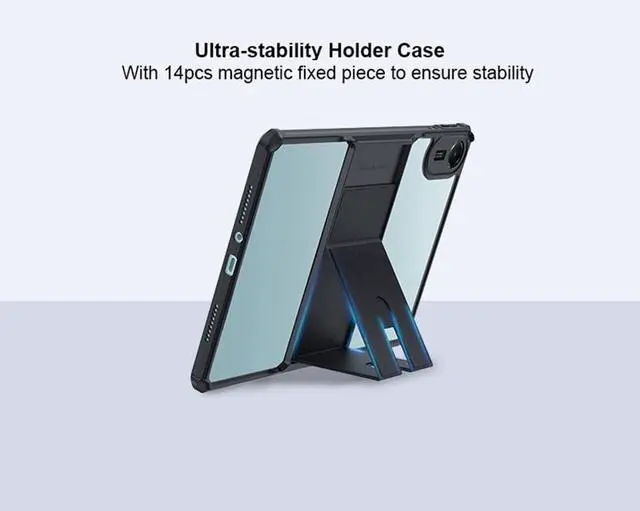 Built-In Stand The clear case built-in stand. Convenient for you to hold your tablet with one hand ,It makes it more convenient for you to watch videos, video calls or type