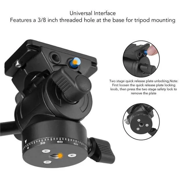 ^^ Portable Lightweight Design: Designed to be lightweight for easy portability, the fluid head is ideal for outdoor filming or travel. It ensures easy storage without occupying excess space, making it ideal for on the go use.