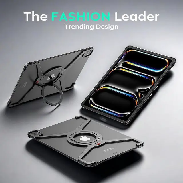 ^^ RELIABLE MILITARY-GRADE PROTECTION: Equipped with premium materials, including a tough aluminum back, camera protection frame, and 360 impact-absorbing corners. The anti-collision corner technology guards against drops, impacts, and daily wear and tear. Despite its robust protection, the slim, front-cover-free design offers effortless portability, letting you carry your iPad like a phone with style, convenience, and lightness.