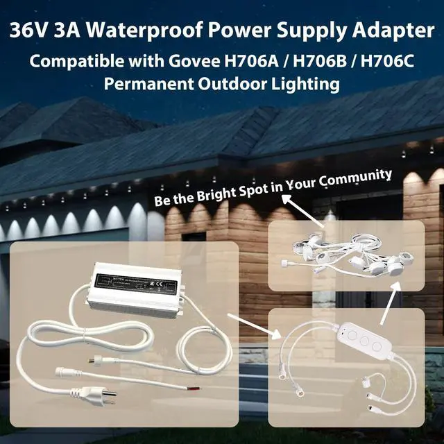 Precise Adaptation Outdoor Light Series Compatible with Govee Permanent Outdoor Light, tailored to perfectly match H705D/H705E/H705F models, with the same interface as the original, plug and play, easily replacing damaged or lost original power supplies, ensuring stable lighting of the lamps. ^^ IPX6 waterproof, all-weather