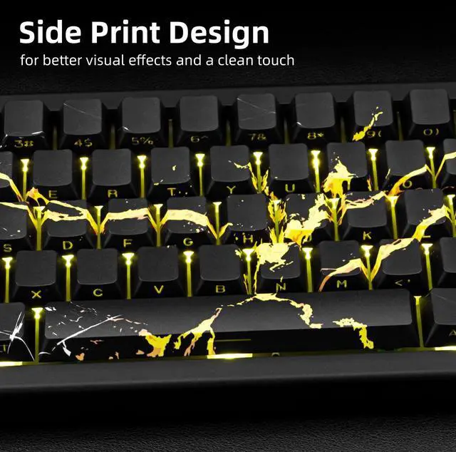 Unique Side Printed Keycaps: Special side-printed design is used to perfect the pattern of the keycaps and allow the light from the keyboard to shine through the fonts.