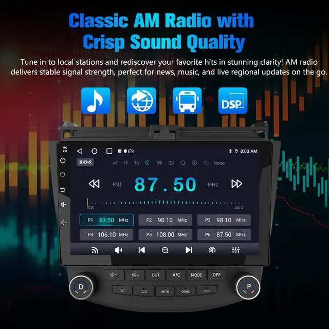 Honda Accord: Precisely designed for Accord (2003-2007), this car stereo integrates seamlessly with original interiors. Features a crystal-clear 10.1 -inch touchscreen for enhanced visuals and intuitive controls. Powered by Android 13 with 2GB RAM + 64GB ROM, delivering optimized performance and ample space for apps. ^^ Smart Navigation via