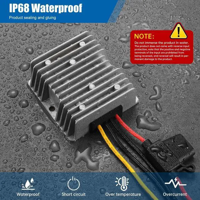 Waterproof Aluminum Alloy: DC 48V to 24V 15A Step Down Converter using IP68 waterproof aluminum alloy shell silicone sealing technology can reach waterproof, shockproof, moisture-proof, dustproof and shockproof and better heat dissipation, more durable.