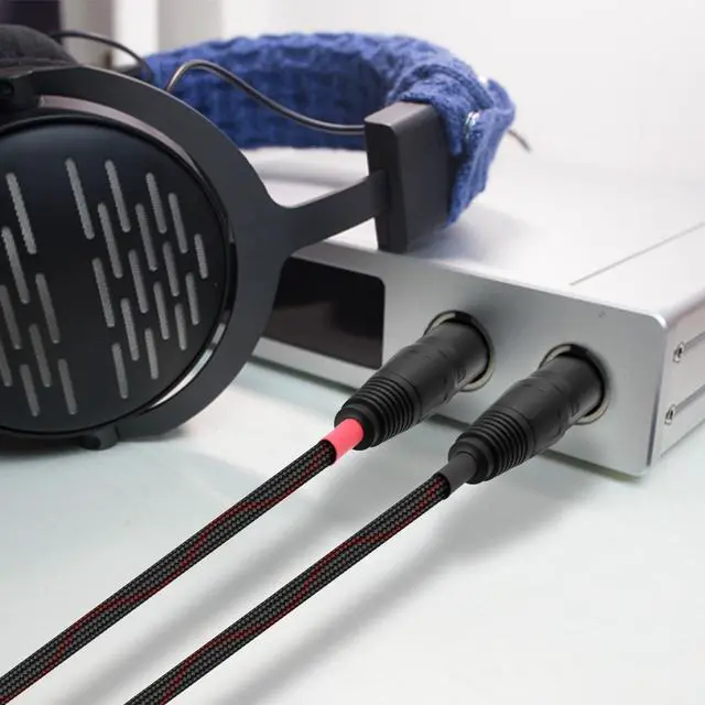 This 4.4 mm TRRRS to dual XLR balanced cable features excellent noise-rejection performance, effectively attenuating up to 90% of ambient noise with minimal external interference or distortion. It represents a significant enhancement in audio balance, allowing users to experience pristine raw audio while improving overall sound quality. ^^ 4.4 mm balanced to XLR conversion cable with gold-plated connectors offers excellent plug durability, resistance to oxidation and corrosion, and ensures low electrical resistance. This design maintains sound transmission quality and resolution without degradation, effectively reduces noise interference, and delivers high-quality, pure, and clear audio performance.